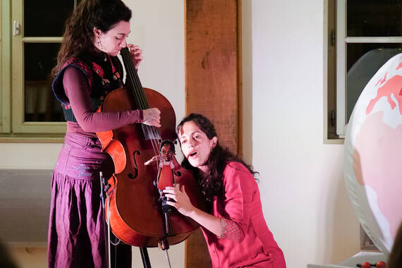 Accompagnant la voix d’un violoncelle ou d’un nyckelharpa aux sonorités rares, Lilanoor ouvre son carnet de voyage, fait tourner le globe terrestre trônant au milieu de la scène... et nous entraîne dans sa farandole autour du monde !